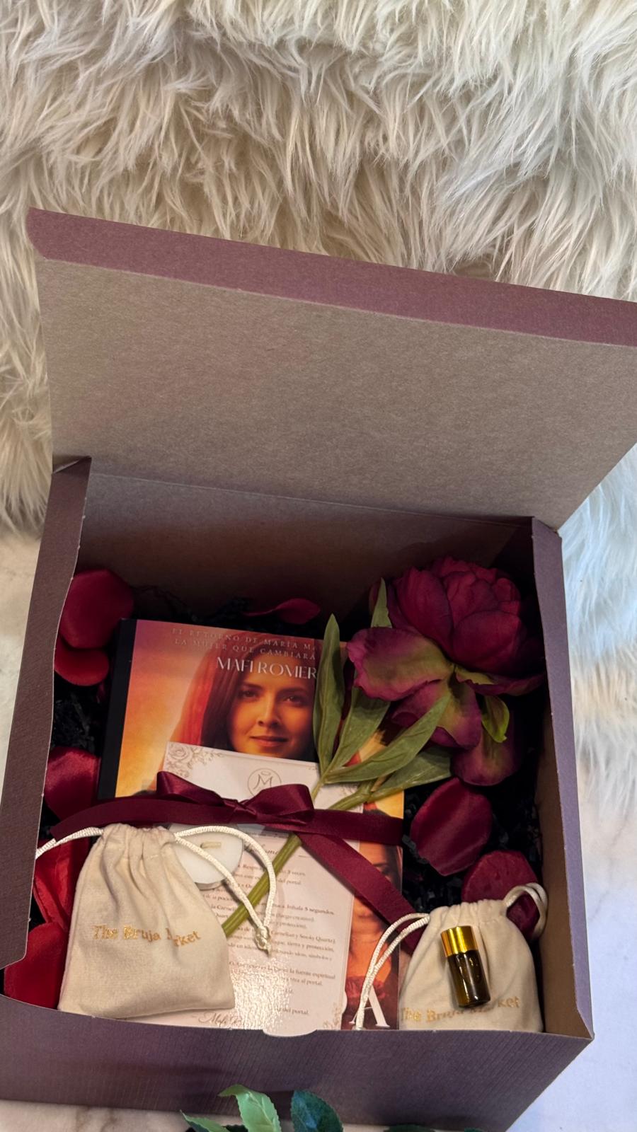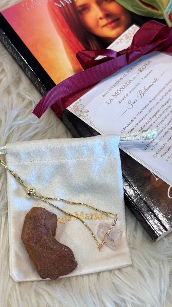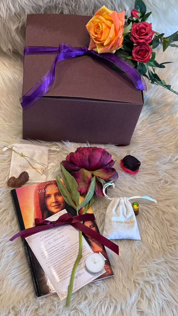Cada kit incluye el libro perfumado con la poción ritual, cristales energéticos elegidos específicamente para ti, una vela, un sachet aromático, una rosa de seda consagrada al Camino de la Rosa y una guía sencilla para realizar el ritual.